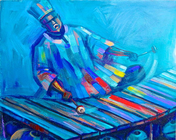 Playing a Xylophone, Amakai captures the essence of West African music styles.